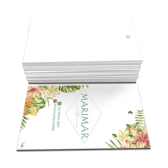 Etiquetas personalizadas Tags personalizadas com logotipo, nome e cores do cliente 4x0 Impressão Frente colorida e verso Material: Couchê 300g Furos 1,5mm , Uso brincos, Roupas, Brindes